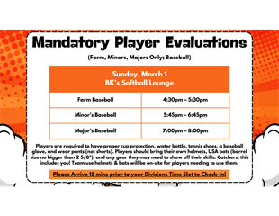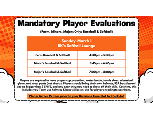 Player registration for the upcoming Spring 2026 baseball season opens on NOVEMBER 1, 2025!!!